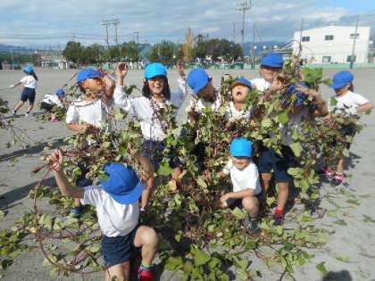 11月14日(水)、1年生が育てたサツマイモを収穫しました。その後、とれたつるを使い、綱引きや縄跳び、お化けごっこ遊びを楽しみました。みんなで、お芋を食べるのが楽しみです。