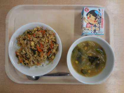 牛乳、ビビンパ☆、トック入り白菜のスープ (652キロカロリー)