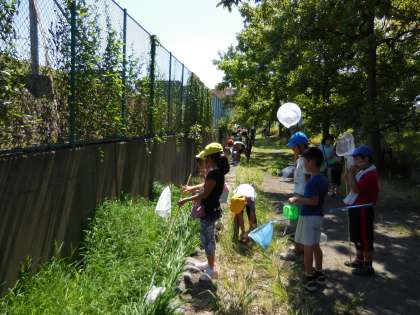 持ち帰った生きものを、子どもたちは興味深く観察していました。