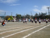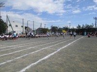 プログラム7番、4年生による「風」80m走です。素早くスタートし、ゴールめざし...
