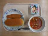 牛乳、エビかつサンド、ミネストローネ (615キロカロリー)