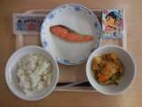 牛乳、麦入りごはん、さけの塩焼き、肉じゃが、焼きのり (655キロカロリー)