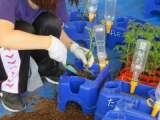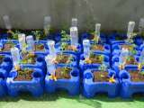 5月8日(金)に、一人ひとりの植木鉢にミニトマトの苗を植えました。本当は、子どもたちと一緒に植えたかったのですが、今回は臨時休業中のため、先生たちで「おいしいミニトマトがたくさんできますように!」と願いを込めながら植えました(写真上)。みんながチューリップを育てていた場所には、今、ミニトマトの苗が並んでいます(写真中)。少しずつかわいらしい黄色い花も咲き始め(写真下)、これからも生長が楽しみです。早く子どもたちに自分のミニトマトを見せてあげたいです!