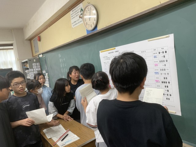 5、6年生は、実行委員、応援団、得点、決勝審判、用具、会場、放送、救護の係に分かれて、運動会を支えます。この日は第1回目の集まり。