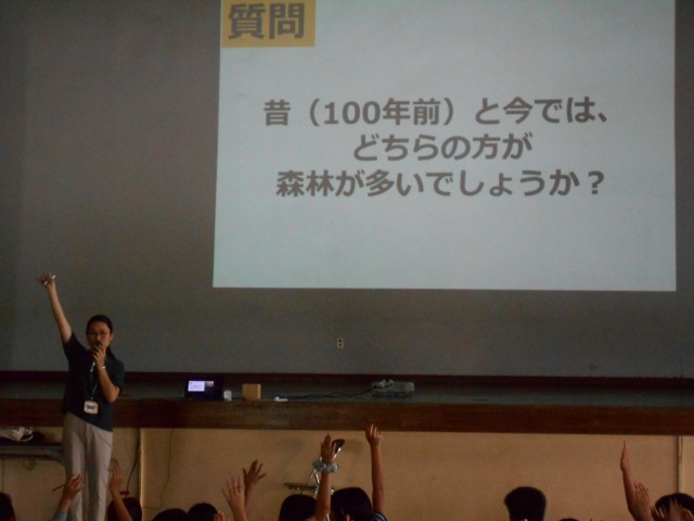 講師の方をお招きし、森林学習として小田原の森林の特徴や林業の重要性についてお話しいただきました。