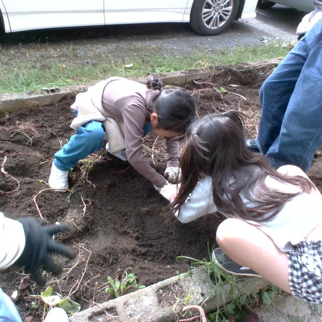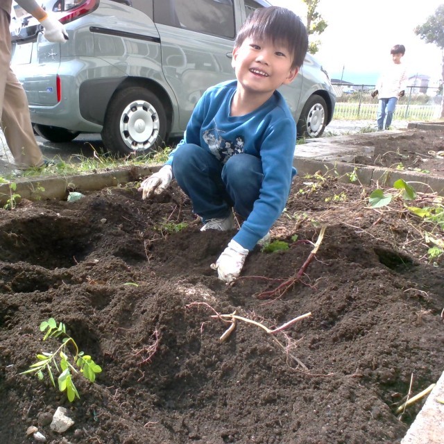 「深いところにある!」「大きいのがとれた!」「こっちにもあるよ!」など楽しそうに掘っていました。