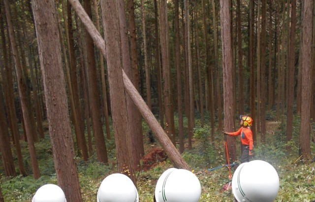 「わたしの木づかい事業」の一環としていこいの森へ足を運び、森林散策、伐採見学を行いました。