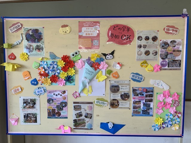 コーディネーターさんを中心に、交通安全、縫い物、農園、図書、活け込み、ミドレンジャー…多方面に渡り、矢作小の子どもたちのため協力をしてくださっています。