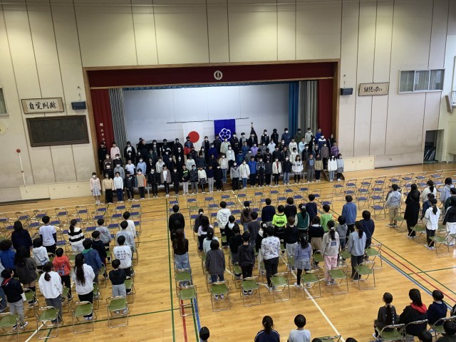 張り詰めた空気の中、卒業生である6年生はもちろん、在校生代表として卒業式に参加する5年生、そして今回は来年度高学年になる4年生も緊張感をもって参加しました。