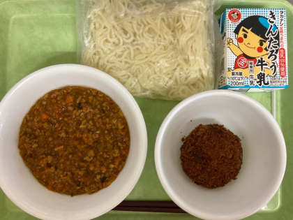 ジャージャー麺にはみじん切りになった野菜がたっぷり入ります。苦手な子が多い、干し椎茸も入っていますが、気にせず食べている様子がありました。
