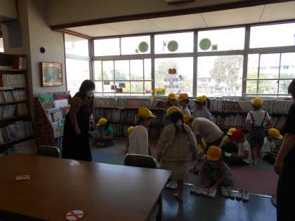 1年生も図書室に入って、本のある場所や使い方を学びました。