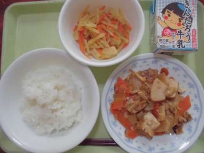 じゃがいものきんぴらは矢作小学校では初めて出すメニューです。じゃがいもの丁度良い歯ごたえを残しつつ上手くできました。しかし、子どもたちにはあまりウケが良くなく残すクラスが多かったです。献立の組み合わせなのか、そもそもの味つけなのか、研究が必要のようです。