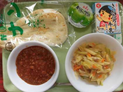 カレーのスパイスが利いていたのでソテーと交互に食べると、ソテーの方は少し味が薄いかなと思うくらいでしたが、完食のクラスが多くて嬉しく思います。ナンは相変わらずの人気でした。