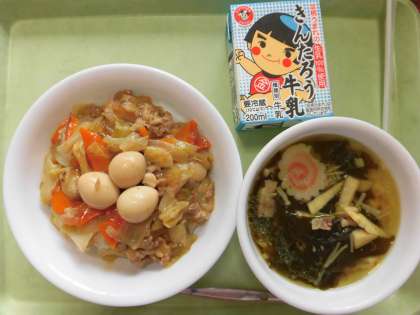 献立 ・牛乳 ・中華丼 ・わかめスープ