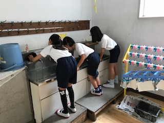 今日は朝の時間が第一回フラモニタイムでした。フラモニとは「フライデー・モーニング」の略です。「全校が仲良くなるために、みんなで遊ぶ時間をつくりたい」「学校をきれいにしたい」という児童の思いをうけ、代表委員会で話し合い、今年度から実施することになりました。今回は赤・白がお掃除、黄・青が遊びを行いました。6年生のリードでどちらの活動をしているグループも、楽しく一生懸命に取り組むことができました。