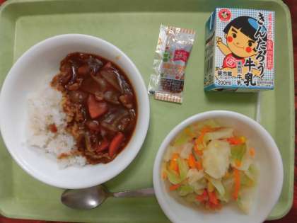 ルーものの献立が二日続いてしまい、反省しています。しかし、昨日とは違いブラウンルーでごはんと一緒に食べるので、子どもたちは特に気にすることもなく、たくさん食べてくれました。