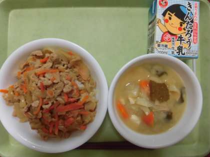 9月25日(火) 今日の給食 公開日 2018/09/25 更新日 2018/09/25 給食 献立 ・牛乳 ・スタミナ丼 ・具だくさん味噌汁 今日から一週間、運動会に向けて給食室からもがんばっている子どもたちを応援したいと思い日替わりで「運動会応援メニュー」が出ます。1日目の今日は豚肉と香味野菜のにんにくとしょうがをたくさん使ったスタミナ丼です。豚肉は疲労回復に効果があるとされる栄養素ビタミンB1を多く含みます。 いいね(0)
