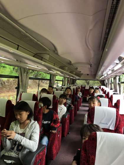 バスに乗り、いろは坂を上っています。この後、華厳の滝に向かいます。