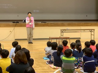 今年度も市役所の地域安全課の方が来てくださり、交通安全教室が行われました。毎年この時期に再確認することで、交通安全の意識を保つことができます。今日学んだことが日々の生活に生かされることを願っています。