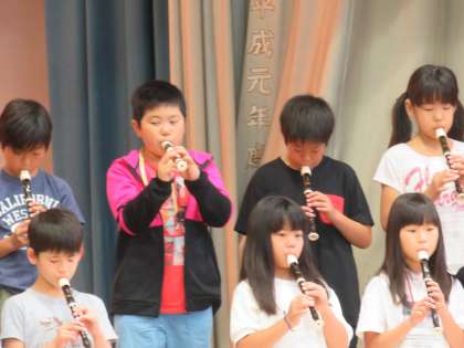 今年度から全学年が順番に発表することになった音楽朝会。トップバッターは4年生でした。「オーラ リー」を日本語と英語で歌い、リコーダーで演奏しました。進級して日も浅いですが、みんなで心をひとつに頑張って練習してきた成果を発揮することができました。