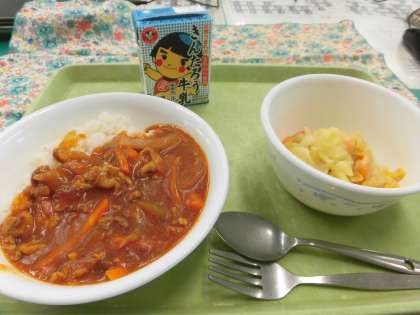 今日の献立 牛乳 ポークストロガノフ ホットポテトサラダ