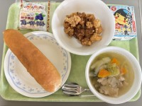 親子丼には白玉麩が入っています。給食で使うことはあまりないので、丸くて小さい白玉麩が気になったようでした。