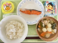 献立・牛乳・ごはん・鮭の塩焼き・白玉のお雑煮風・いよかんゼリー